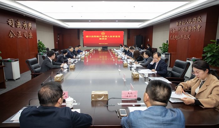 为坚决贯彻落实政法队伍教育整顿工作要求,进一步深化供给侧结构性改革,优化营商环境,防范化解重大风险,推动破产审判高质量发展,4月22日,浦口法院组织召开破产管理人座谈会,征求破产管理人的意见和建议。院党组副书记、副院长张晖,民二庭庭长俞昌盛,省管理人协会、14家破产管理人及中行江北分行代表出席座谈会。