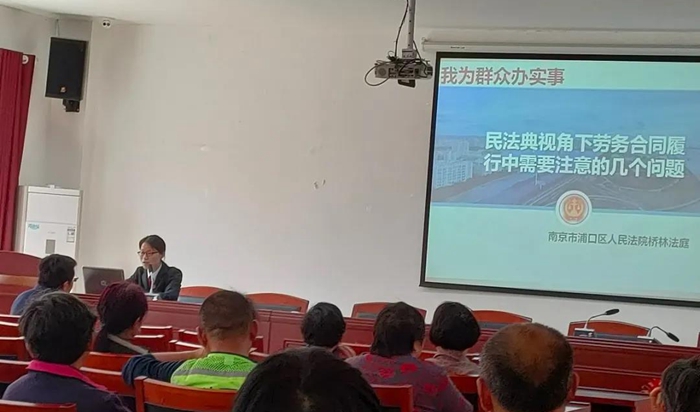 4月30日,就近期桥林法庭出现的劳务合同纠纷案件数量呈上升趋势,部分案件中存在提供劳务一方在劳务合同签订、履行中法律意识淡漠,合同签订不规范导致维权风险的问题,桥林法庭张海霞庭长为桥林街道周营社区群众开展了题为“民法典视角下劳务合同履行中需要注意的几个问题”的普法宣传讲座。