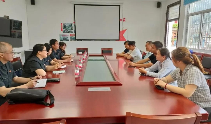 6月4日上午,南京中院民一庭法官赵珺珉、宛洪顺、陈礼苋走进浦口区桥林街道周营村,开展政法网格员进社区为群众办实事座谈会。浦口法院审判委员会专职委员徐小虎,桥林法庭干警、周营村工作人员以及全体网格员参加了座谈。
