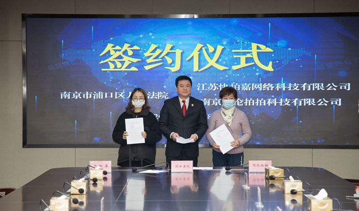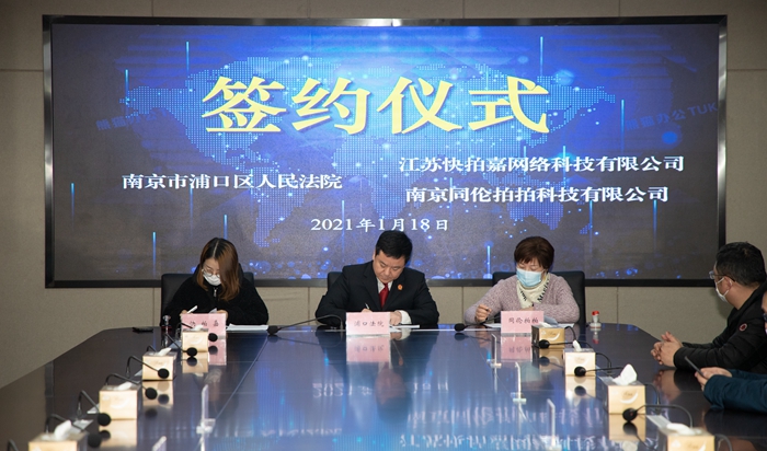 1月18日下午,浦口法院执行局与江苏快拍嘉网络科技有限公司、同伦拍拍网络科技有限公司在浦口法院举行签约仪式。