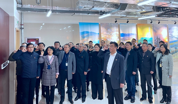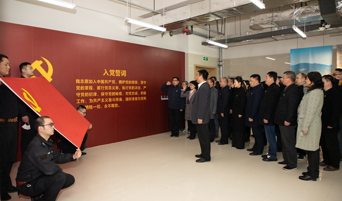 参观结束后,全体党员在陈院长的带领下,面对鲜红的党旗,重温入党誓词,铿锵有力的宣誓声响彻红色档案教育室。