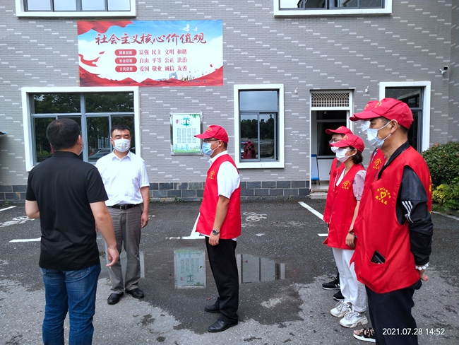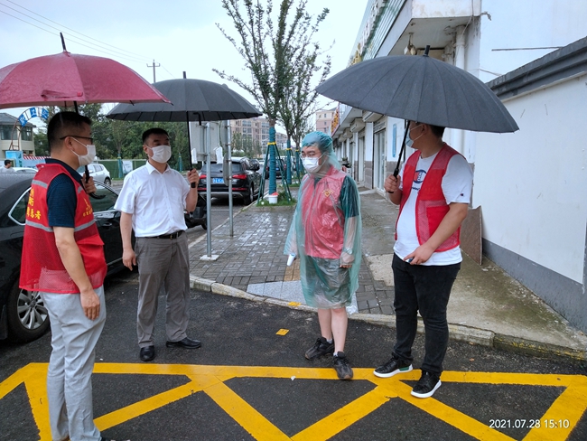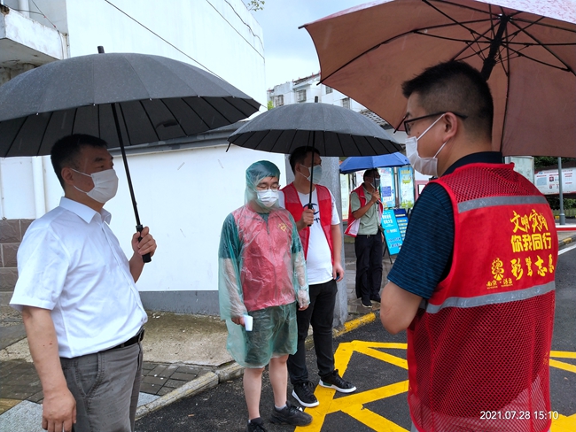 7月28日下午,院党组书记、院长陈高峰前往浦口区汤泉街道疫情防控值勤点,看望慰问支援街道防疫工作一线法院干警。