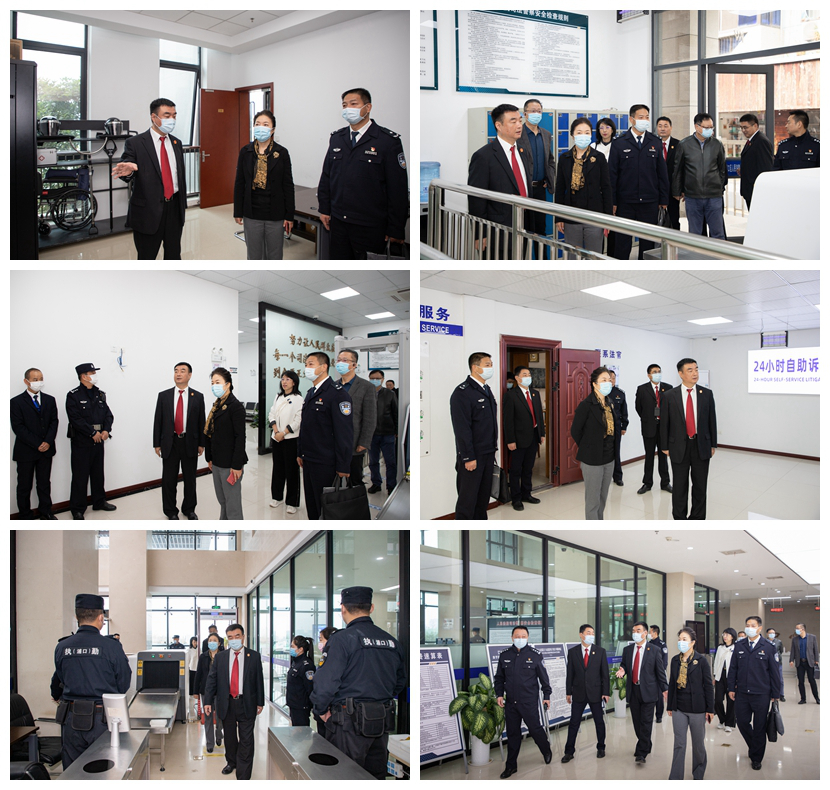 为总结、巩固教育整顿成效,进一步严格落实基层法院安保责任,确保法院“两保一争”工作目标圆满完成,11月17日上午,市中院党组副书记、副院长李爱君,刑一庭庭长鲍强,刑二庭庭长周侃,刑三庭庭长方红,法警支队支队长汤明一行到浦口法院督查指导工作。