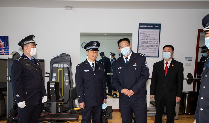 李总队长对浦口法院的警务工作及党建工作给予肯定,指出良好的体能是做为一名司法警察必备要素,只有在身体素质好的状态下才能更好地展现警务技能、完成各项警务工作,并介绍了总队警务工作的经验及党建工作基本做法。