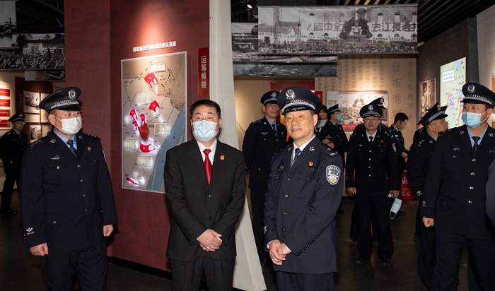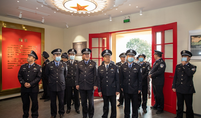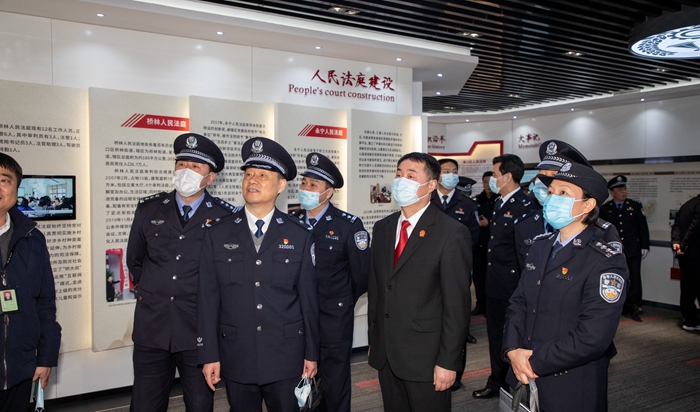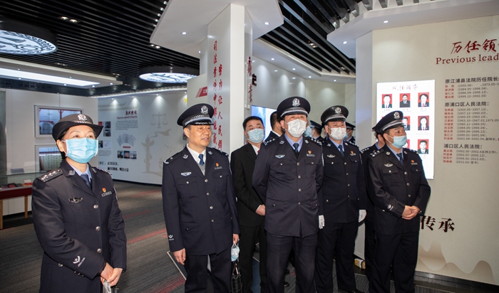 李总队长一行首先参观了浦口法院的体能训练室和院史陈列馆