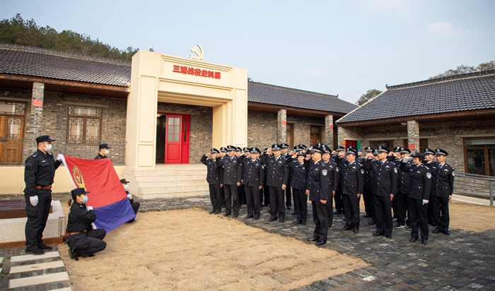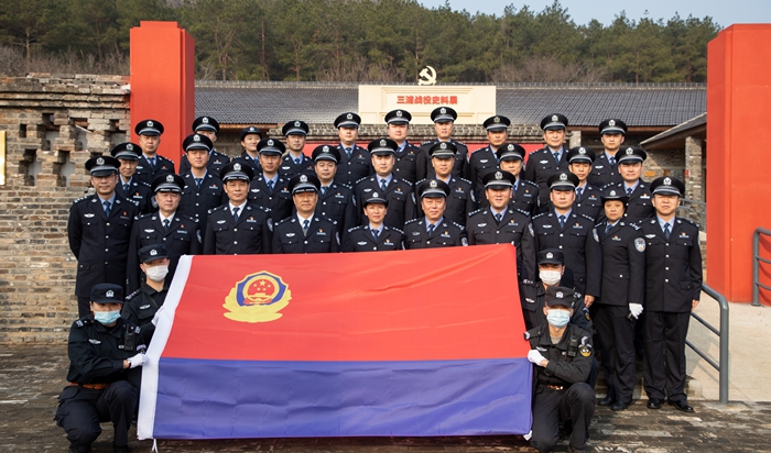 最后,在庄严的警旗下,全体法警举起右拳宣誓:坚决拥护中国共产党的绝对领导,矢志献身崇高的人民司法事业,对党忠诚、服务人民、执法公正、纪律严明,为捍卫政治安全、维护社会安定、保障人民安宁而英勇奋斗!