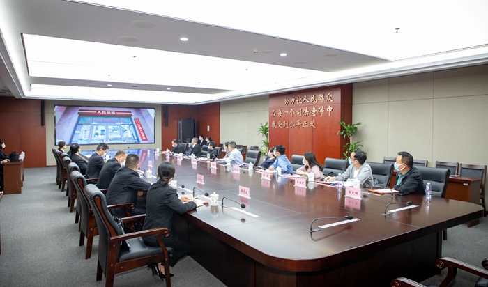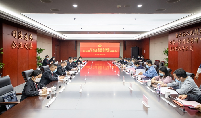 在随后召开的座谈会上,视察组一行观看了人民法庭宣传片《履职尽责显担当 服务振兴促发展》。