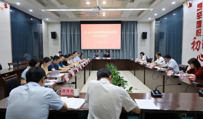 徐锦辉指出在街镇设立政法委员是《政法工作条例》的明确要求,中央和省委政法委先后下发街镇政法委员职责清单,进一步明确工作责任,实现了“党管政法”向基层延伸。近期,习近平总书记在江苏考察时指出“江苏必须在推进社会治理现代化上实现新提升”。街镇政法委员担负基层社会治理、平安稳定的重要职责,各板块要以试点工作为牵引,进一步创新创优基层政法工作机制,将总书记的指示精神贯彻到位、落实到位。