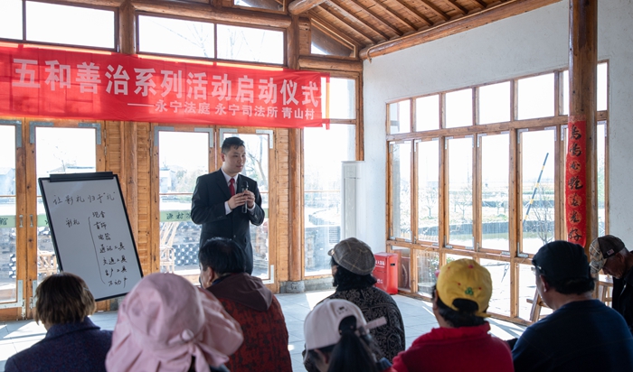 为坚持和发展新时代“枫桥经验”,提升社会矛盾纠纷预防化解法治化水平,努力将矛盾纠纷止于未发,化于萌芽,3月29日下午,浦口法院永宁法庭联合永宁司法所、青山村在青山渔村举行“法润乡土 五和善治”系列活动启动仪式。