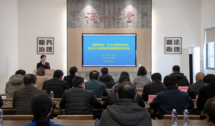 2月21日下午,“浦和学堂”2025年度开班仪式暨2024年度优秀调解案例发布会在浦口法院永宁法庭举行。本次活动旨在总结过去一年“浦和学堂”在基层矛盾调解工作中的成果,表彰优秀调解案例,并展望2025年工作。南京市中级人民法院审判委员会专职委员芮铭珍,浦口区委常委、统战部部长、政法委书记刘玉冬,浦口法院党组书记、院长陈海英,浦口区司法局局长赵庆出席活动。