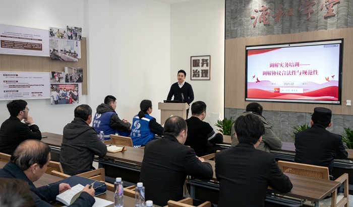 浦口法院立案庭副庭长黎庆东为人民调解员和网格员讲授了《调解指引解读及案例讲析》,涵盖了调解的基本原则、技巧以及实际案例的分析。