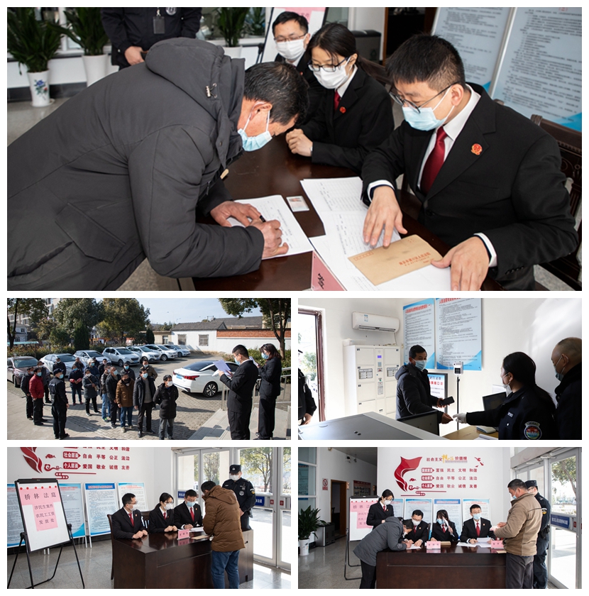 1月底,桥林法庭各法官的办案系统中突然接收了17起农民工追索劳务合同纠纷的案件,这顿时引起了桥林法庭的法官们的关注。为了落实“六稳”“六保”任务,让外来务工人员能够过个安心年,让农民工群体能不再忧“薪”忡忡,桥林法庭三个审判团队立即开启审判绿色通道、迅速安排开庭,于2月3日对17名原告及被告孙某进行调解并达成分期还款协议。