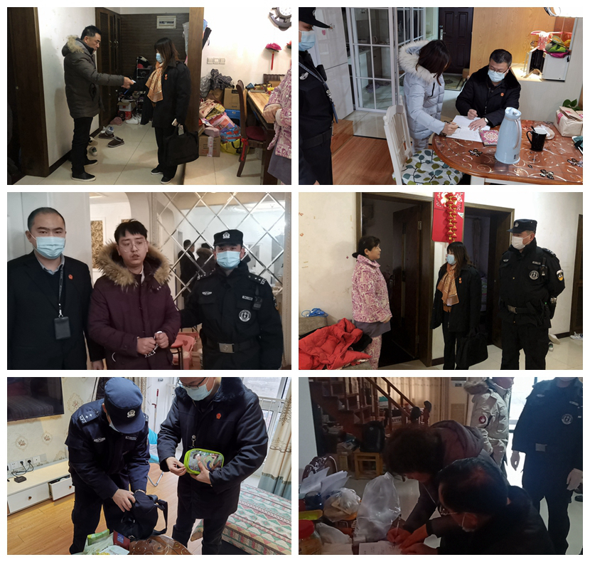 2月8日凌晨,执行局30余名干警整装待发,兵分四路奔赴现场对在执行中的案件开展执行行动。各实施小组在严格遵守疫情防控要求的前提下,仔细搜查现场,询问被执行人相关情况。