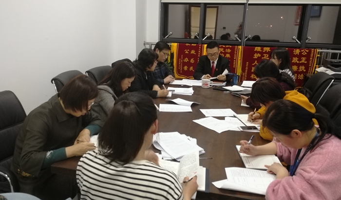 3月25日晚,浦口法院内灯火通明,全体正式干警人手一本学习资料,或默默背诵,或静静思索,或细心抄录,书本翻页和纸笔摩擦的沙沙声,让夜晚的办公室显得更加静谧。