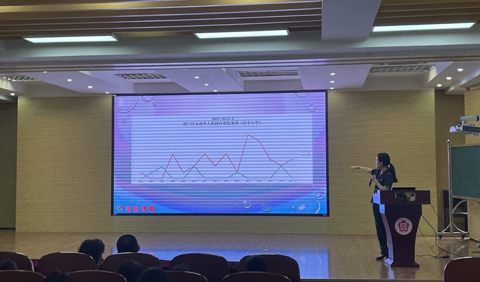 少年家事庭徐馨庭长向师生们介绍了未成年人身体侵害案件的一般特点,提醒孩子们在日常生活中注意隐私部位保护,与他人保持健康的交往距离。