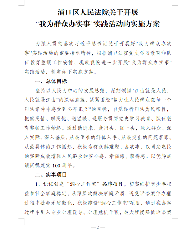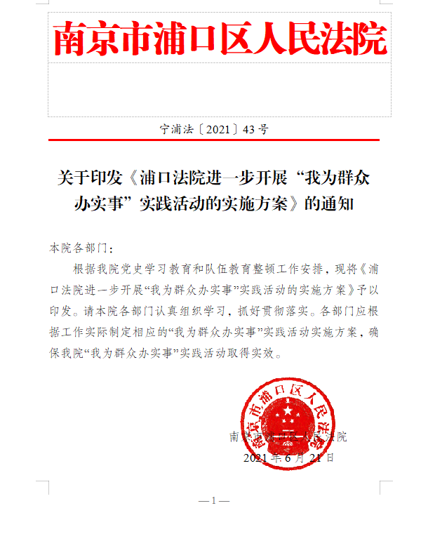 关于印发《浦口法院进一步开展“我为群众办实事”实践活动的实施方案》的通知