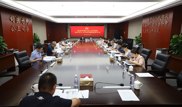 7月16日下午,浦口法院召开2021年1-6月审判质效讲评会。会议由院党组书记、院长陈高峰主持,各业务部门分管院领导和正、副职负责人参加了会议。