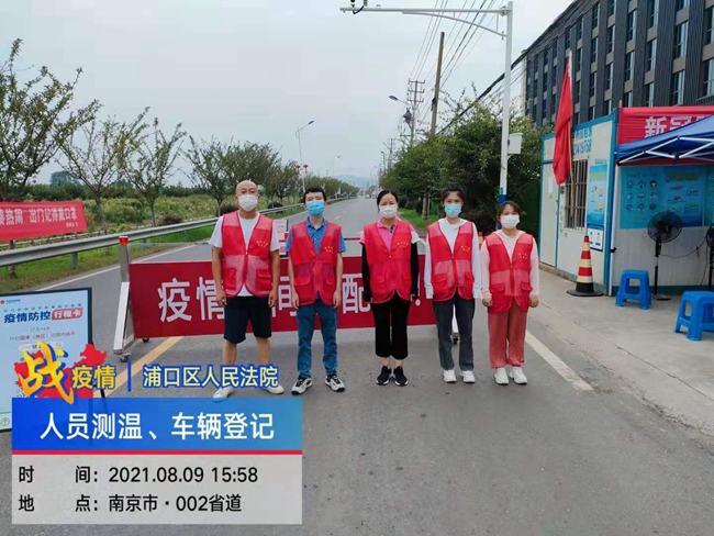 7月26日,根据组织安排和防疫要求,浦口法院选派志愿者赴汤泉街道参加入户登记排查以及各卡点值守工作。