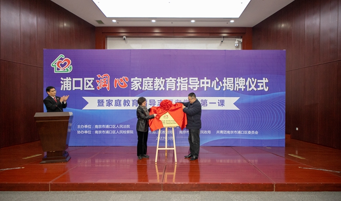为进一步贯彻落实《中华人民共和国家庭教育促进法》,探索建立家庭教育指导服务体系,保护未成年人合法权益。3月4日上午,浦口区润心家庭教育指导中心揭牌仪式在浦口法院举行。