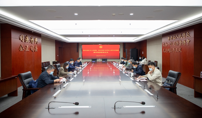 南京市中级人民法院、 南京市人力资源和社会保障局、南京市劳动人事争议仲裁院、浦口区人力资源和社会保障局、浦口区劳动人事争议仲裁院、浦口法院主要领导及相关部门负责人参加会议。会议由浦口法院党组成员、审判委员会专职委员徐小虎主持。