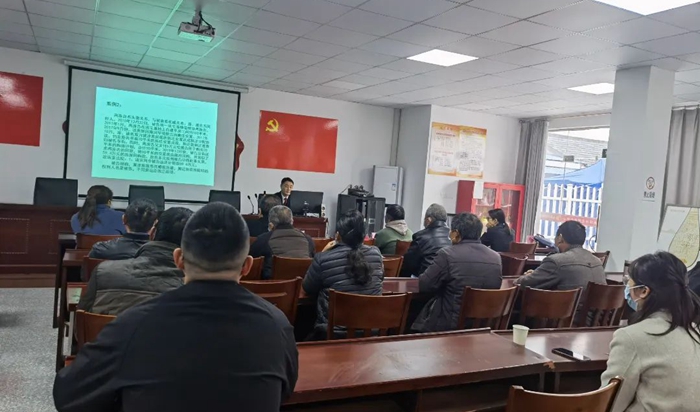 11月18日上午,浦口法院党组成员、审判委员会专职委员徐小虎,桥林法庭庭长张海霞来到桥林街道南驿村,开展“浦法心桥—身边人讲述身边事”普法宣传活动,该村调解员、法律明白人、网格员、部分村民代表参与本次活动。