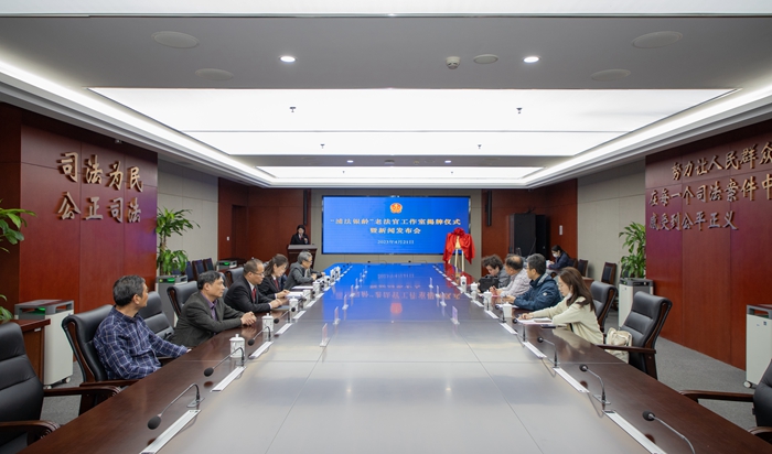 为深入推进多元化矛盾纠纷解决工作,打造共建共治共享的社会治理格局,4月21日,“浦法银龄”老法官工作室揭牌仪式暨新闻发布会在浦口法院举行。浦口法院党组成员、政治部主任吕洁,党组成员、审判委员会专职委员何明,立案庭庭长陈安,工作室法官彭小铮、朱模宝、朱敏、平元华、徐学芳参加揭牌仪式。