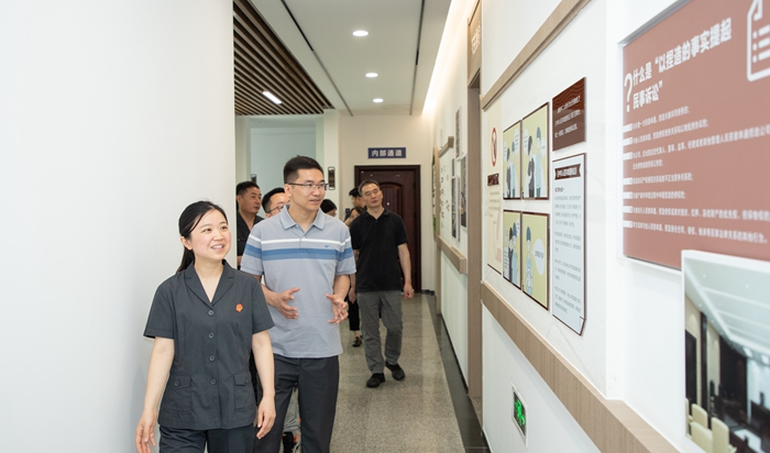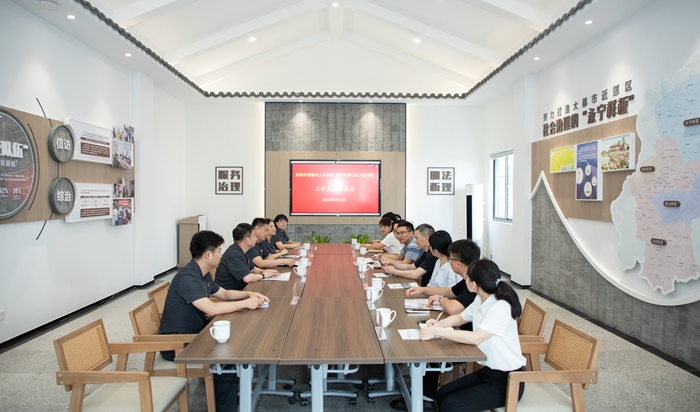 在随后召开的座谈会上,徐小虎专委介绍了浦口法院近年来在诉源治理、繁简分流、审判管理等方面取得的成果。永宁法庭庭长鄢志文介绍了永宁法庭的基本情况,以及法庭在品牌建设和服务乡村振兴方面的工作举措和成效。与会人员结合工作实际,围绕审判质效提升、多元纠纷化解以及诉源治理等工作进行了深入交流和研讨。