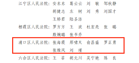 近日,南京市中级人民法院通报2023年度全市基层法院先进集体和先进个人,浦口法院民事审判第一庭荣获集体三等功,郑红梅、黎庆东荣获个人三等功,李成理荣获基层法院院领导嘉奖,张海霞、邢啸天、俞昌盛、罗正勇、张维凤、刘瑾荣获市优秀法官(优秀工作者)等荣誉称号。