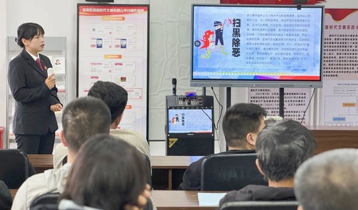 活动中,桥林法庭干警黄秋彤介绍了常态化扫黑除恶斗争相关知识,向大家普及黑恶势力的特征、种类、打击的重点等,并通过一问一答的形式讲解《中华人民共和国反有组织犯罪法》的立法背景、意义和亮点,结合案例详细阐明了什么是有组织犯罪以及我国依法从严惩治黑恶犯罪的刑事政策,引导社区矫正对象自觉远离黑恶势力,积极检举揭发黑恶势力违法犯罪线索。