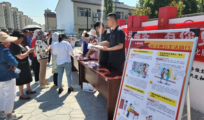 今年5月是第四个“民法典宣传月”。为营造尊法知法守法用法的良好法治氛围,让民法典深入人心,5月23日,浦口法院永宁法庭联合永宁街道、永宁司法所、妇联,共同走进永宁街道大桥社区、开展民法典普法宣传活动。