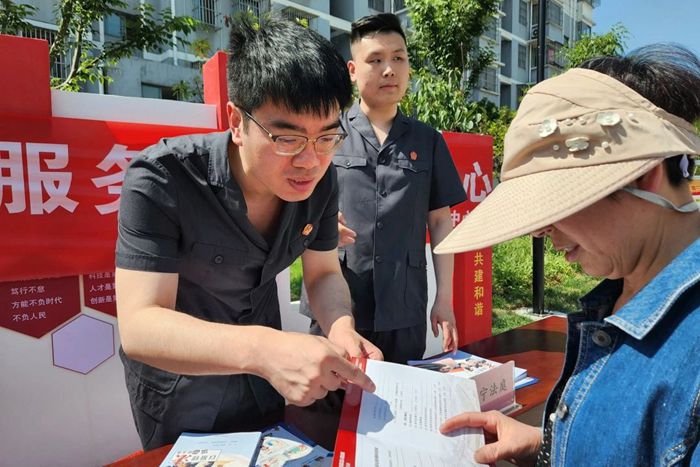 “阿姨,您看这个民法典类案调解指引,上面选取了生活中常见的案例,可以了解一下。”