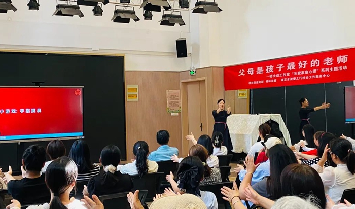 “桥大叔”工作室心理咨询师吴敏用一场有趣的互动游戏“手指摸鼻”烘热现场气氛。家长们在轻松愉快的氛围中,通过完成游戏任务,体验亲子之间的沟通默契与快乐。游戏过后,家长们认真聆听吴老师讲述“孟母三迁”与“芒山盗”的经典故事,从故事中感受家庭教育的力量,深入思考如何为孩子营造一个更加健康、和谐的成长环境。