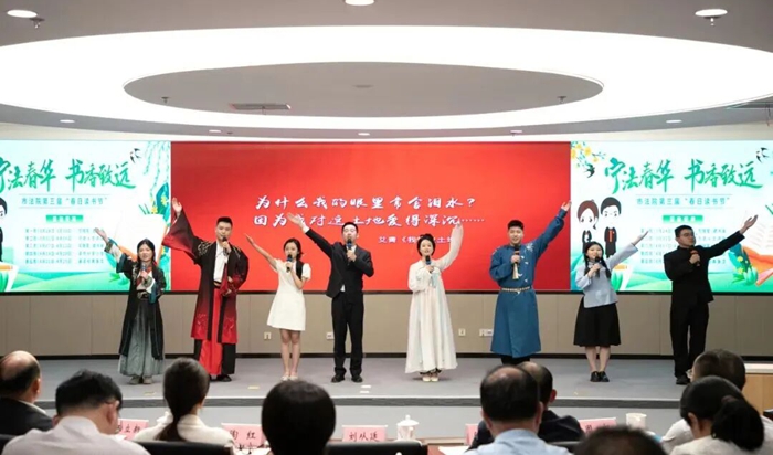 5月10日,南京法院第三届“春日读书节”美文诵读大赛现场,浦口法院8名干警以《诗卷长留家国心》为题,用音诗画串联,在赛场上展现出独特风采,并荣获二等奖。